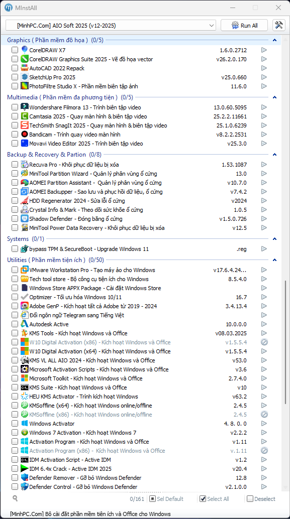 - AIO Soft 2025 v12 (41.1GB) ( Yêu cầu tắt Defender khi sử dụng ).